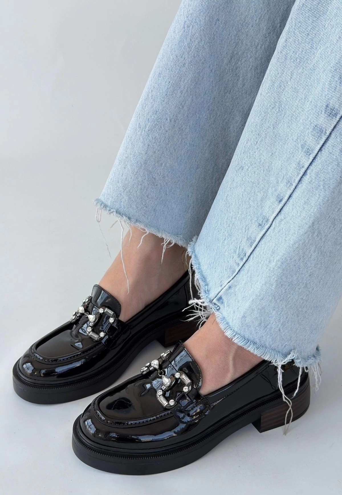 Dustim Siyah Taşlı Babet Ayakkabı -