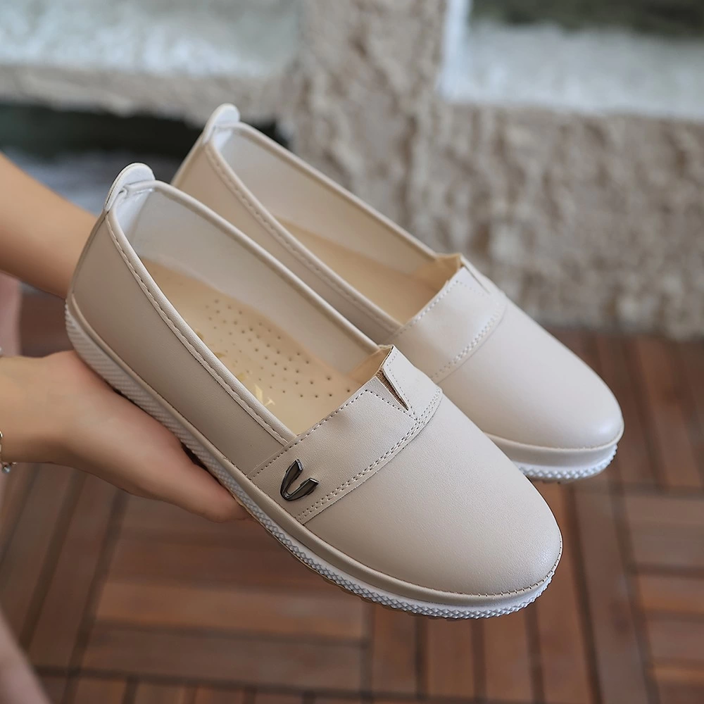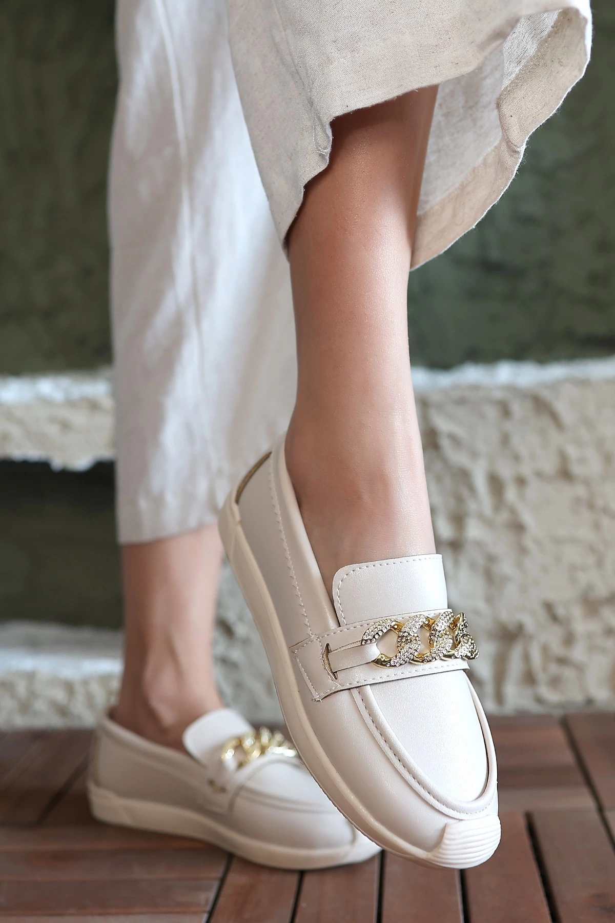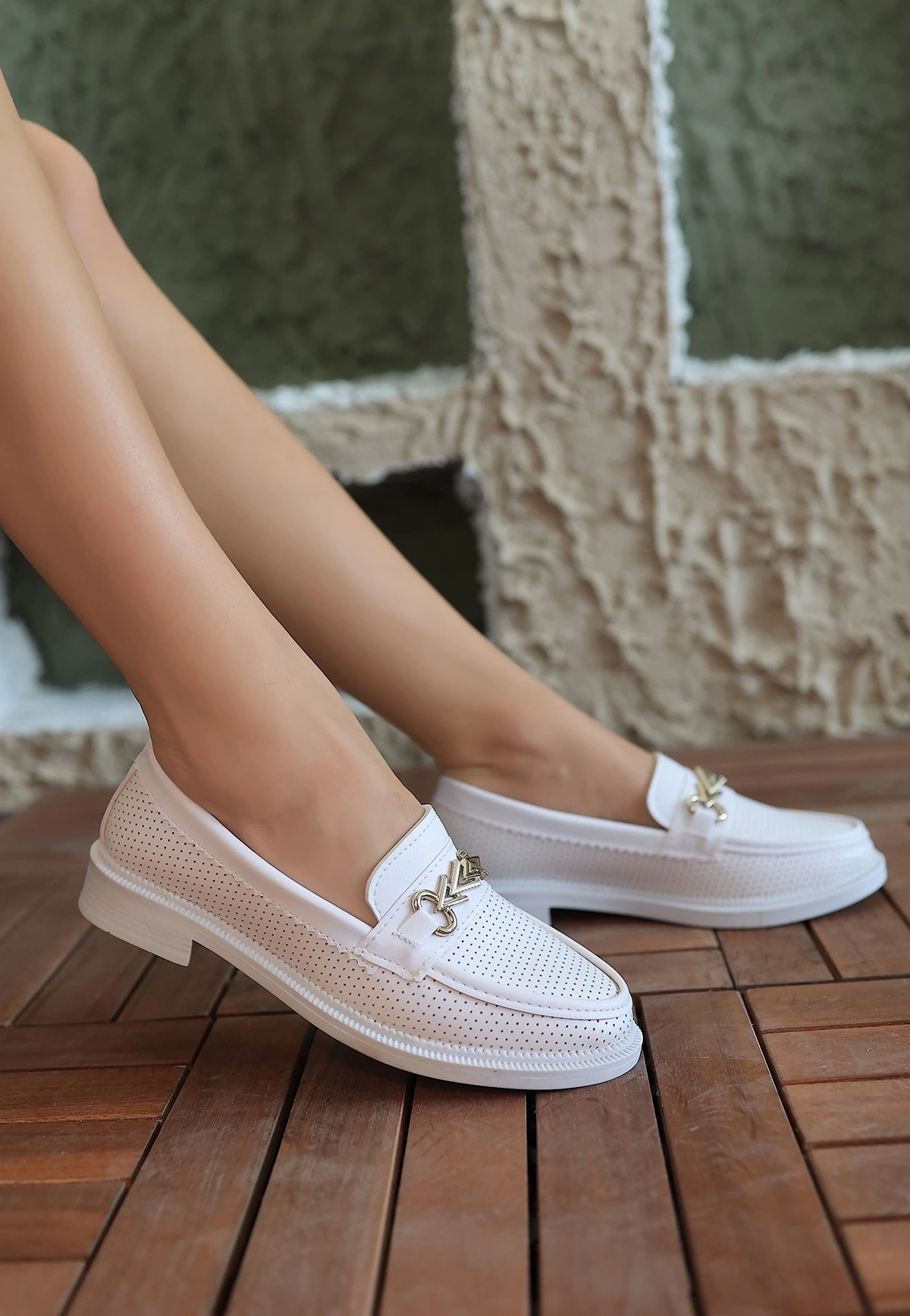 Hooset Beyaz Cilt Babet Ayakkabı -