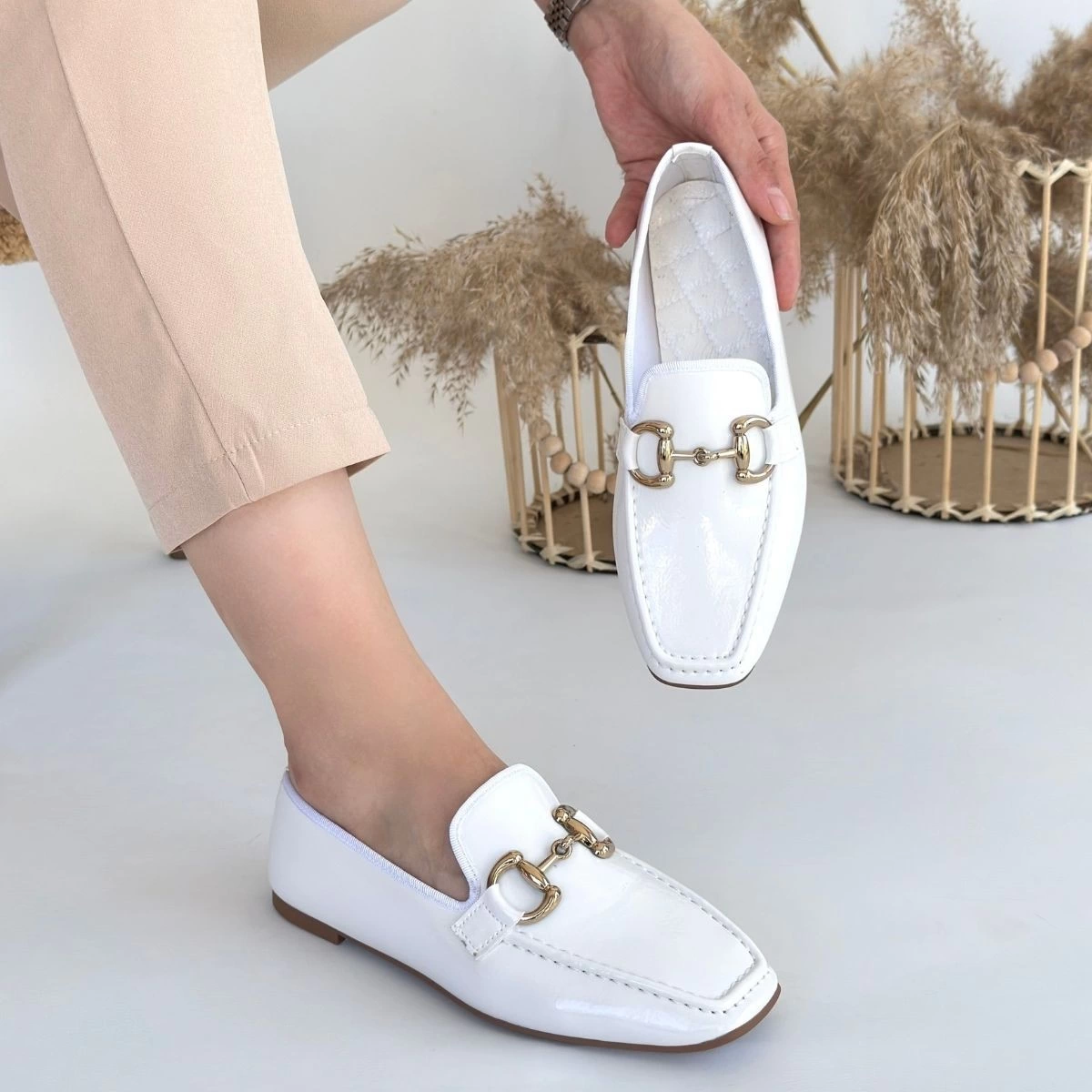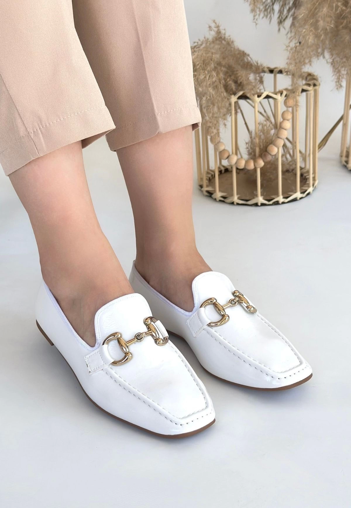 Giwa Beyaz Cilt Babet Ayakkabı -