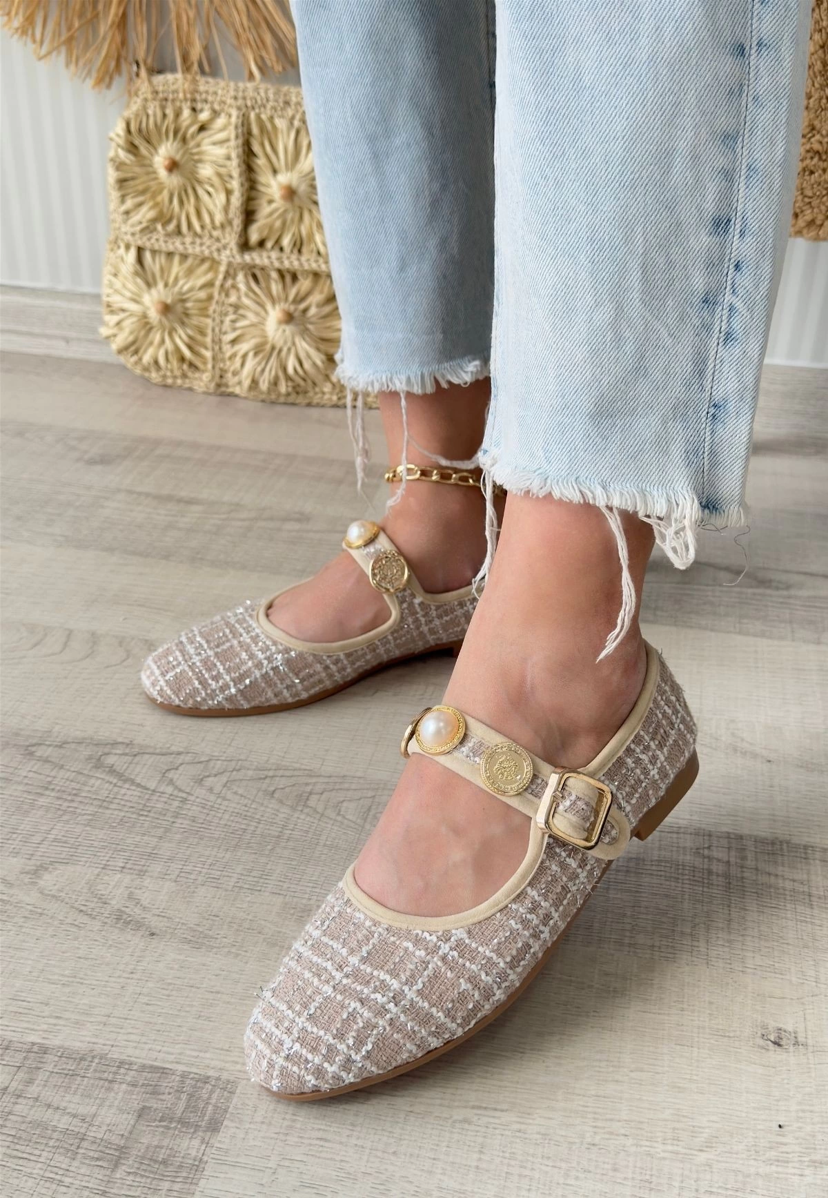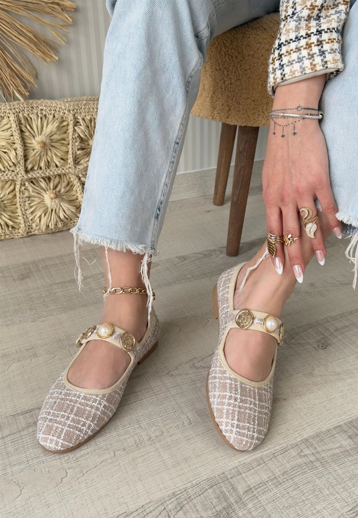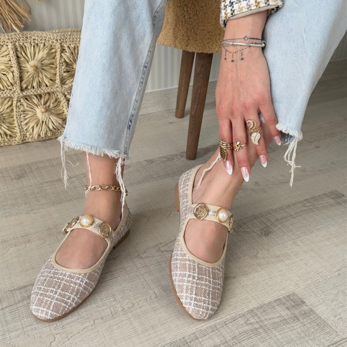 Hante Bej Keten Taşlı Babet Ayakkabı -