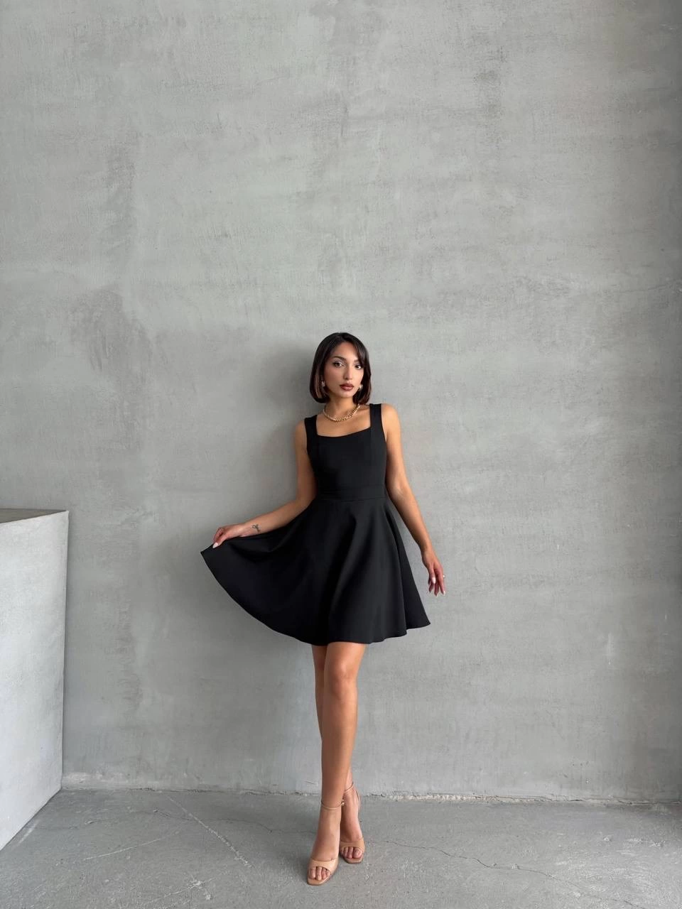Kadın siyah leoparlı ince askılı likralı elbise s8105 -