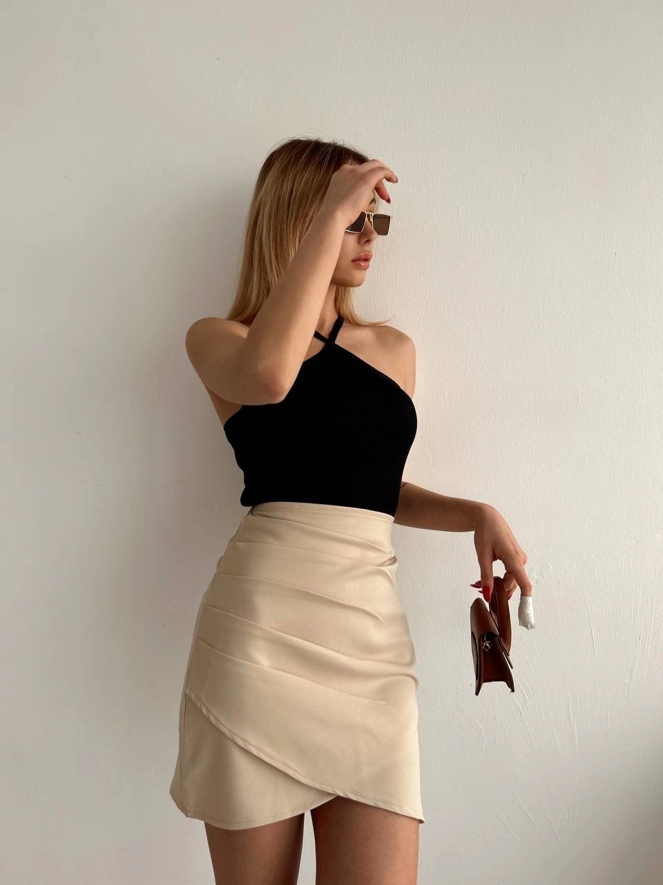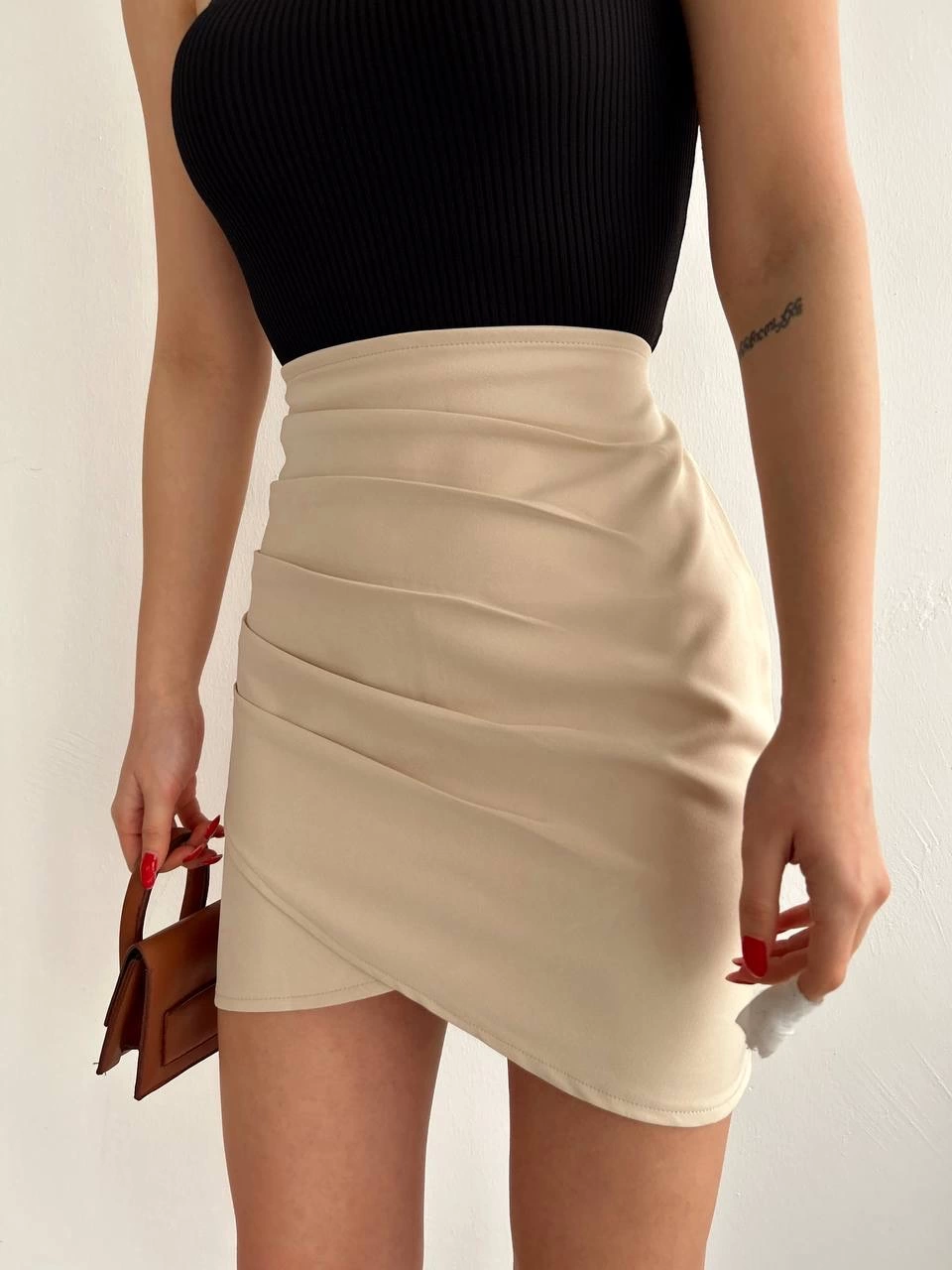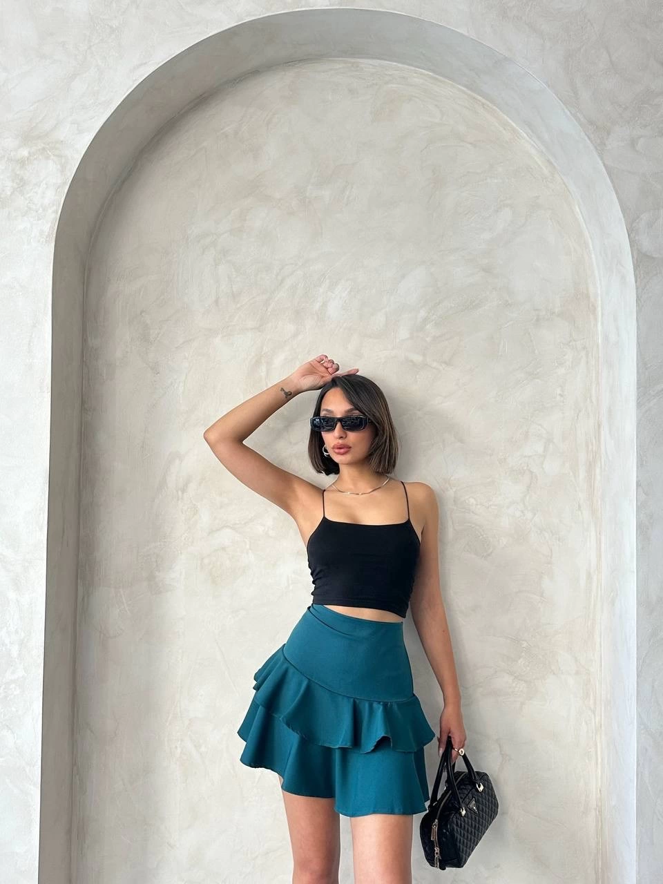 Yırtmaçlı esnek kumaş midi boy etek koyu kırmızı -