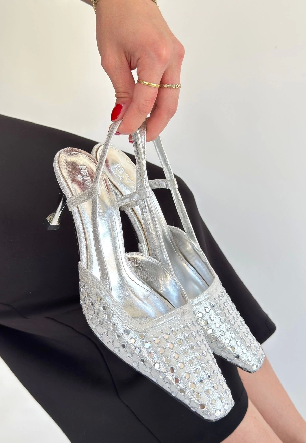 Feey Gümüş Cilt Topuklu Ayakkabı -