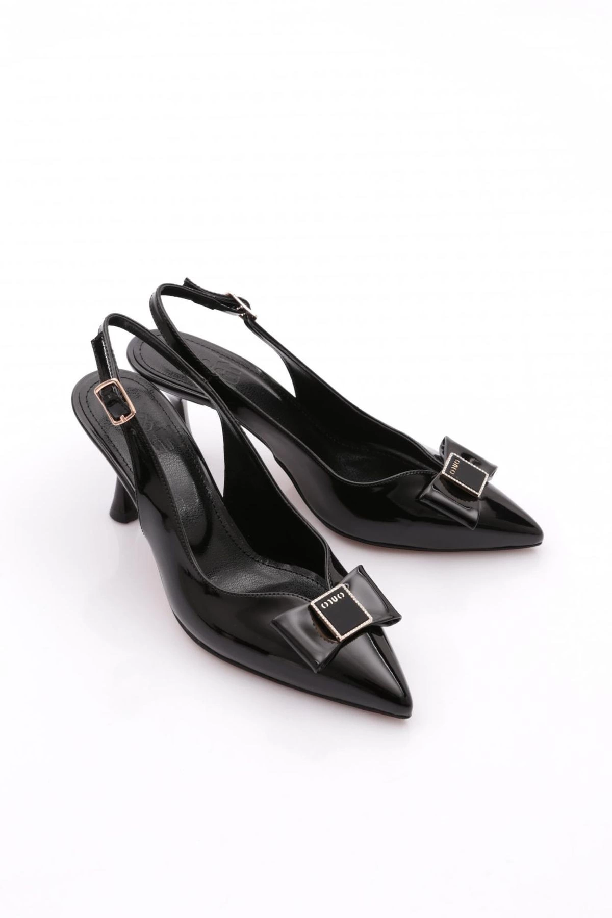 Onji Siyah Cilt Topuklu Ayakkabı -
