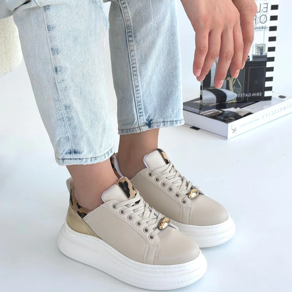 Gasta Bej Cilt Sarı Detaylı Bağcıklı Spor Ayakkabı